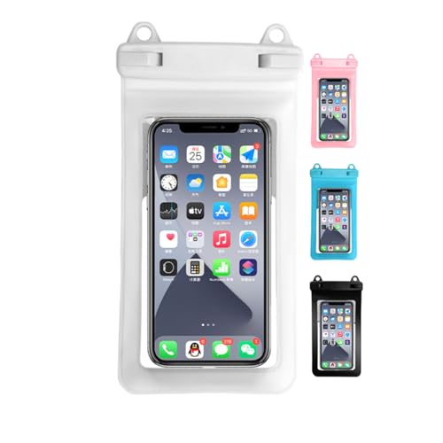 ストラップ付きの防水携帯電話ポーチケースです。7.5インチ以内のスマートフォンに適しており、ビーチでの使用に最適です。色はホワイト。