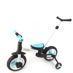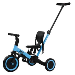 【ホワイト】BTM子供用三輪車は5in1で、自転車、二輪車、補助輪、キックバイクとして使用可能。押し棒と安全バー付きで、安全に遊べます。幼児用のお祝いギフトにも最適な乗用玩具です。