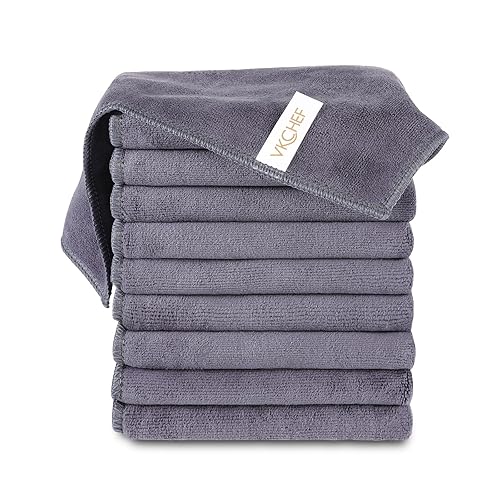 VKCHEFのマイクロファイバークロスは、厚手で強力な吸水性を誇るクリーニングタオルです。速乾性があり、キッチンや洗車、掃除など多用途に使えます。10枚入り、ダークグレー、サイズ30×30cm。