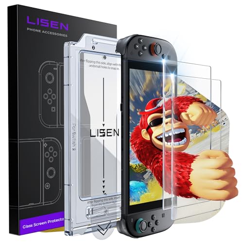 LISEN対応のSwitch 2保護フィルムは、全面保護の強化ガラス仕様で、一発貼り自動貼り付けキット付き。気泡ゼロ、指紋防止、高透過率、撥油性、超耐久、高光沢を実現しています。