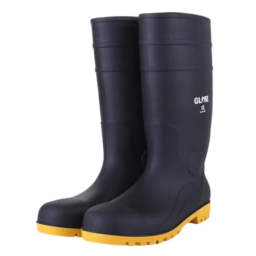 MYJYG安全長靴は、メンズ用作業靴で、鋼先芯入り、軽量、防水、耐油、滑り止め機能を備えています。耐摩耗性が高く、踏み抜き防止設計で疲れにくいのが特徴。建築や農作業に最適で、サイズは24.0〜29.5cm対応です。