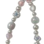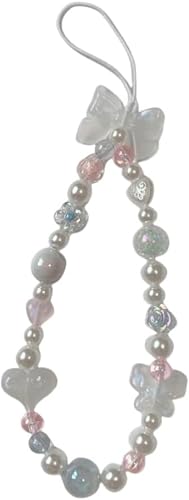 可愛らしい手作りの電話チャームストラップキーホルダー。ファッショナブルなビーズロープを使用し、アクリル、樹脂、プラスチックで構成。ホワイトカラーが特徴的です。