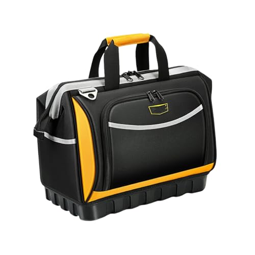 KOGBツールバッグは、25ポケット付きの16インチサイズで、効率的な収納を実現します。耐久性のある素材を使用し、持ち運びに便利なハンドル付き。工具や小物を整理しやすい設計です。