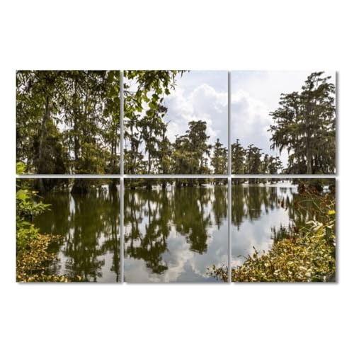 6枚セットの防音シート、厚さ1cmの自己粘着タイプ。吸音材として音を吸収・低減。テキサス州カド湖の美しいデザイン。縦120cm×横180cm。取り付け簡単で、寝室やオフィスに最適。