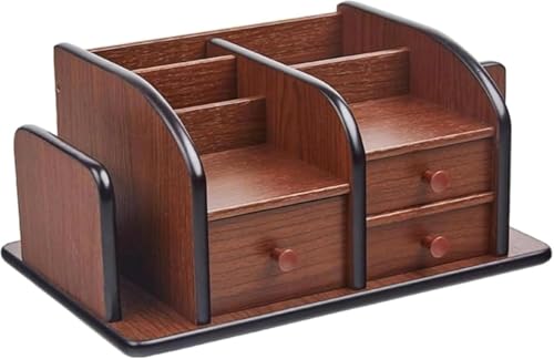 Farigrut木製ペンホルダーは、勉強や仕事に最適なデスクトップオーガナイザー。複数のコンパートメントと棚があり、文房具やリモコン、小物を整理可能です。