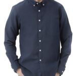 Arohの長袖速乾ビジネスシャツは、ネイビー色であり、軽量で通気性に優れています。シワになりにくく、オフィスやビジネスシーンに最適なデザインです。お手入れも簡単で、快適な着心地を提供します。