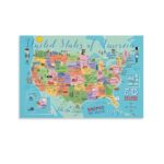 子供向けのアメリカ合衆国地図ポスターです。プリントキャンバス製で、モダンなデザインの壁アート。サイズは16x24inch(40x60cm)、お部屋の装飾やギフトに最適です。