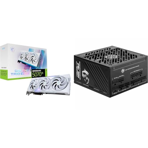 MSI GeForce RTX 5070 Ti 16G GAMING TRIO OC WHITEは高性能グラフィックボードで、VRや4Kゲーミングに最適。MPG A1250GSは1250WでPCIe 5.1対応、安定した動作を提供します。