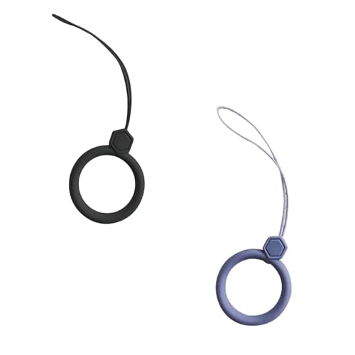 イニコライフのシリコン製ストラップリング2個組。軽量で内径約2cm、スマートフォンやデジカメ、鍵などに最適。シンプルデザインでカラーはレッドとブラック各1個ずつ。