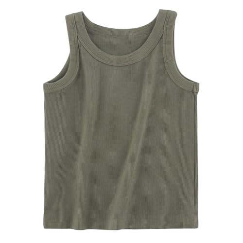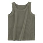 モノトーンの子供用タンクトップ。綿製で通気性が良く、涼しさと快適さが特徴。汗を排出し、柔らかい肌に優しい。ニュートラルデザインで男の子・女の子兼用、グリーン110サイズ。