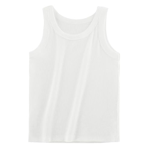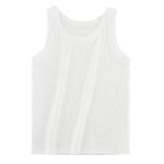 YumeFlairのモノトーン子供用タンクトップ。綿素材で通気性が良く、涼しく快適。汗を排出し、柔らかく肌に優しい。ニュートラルなデザインで男の子女の子兼用。丸首スタイル、ホワイト140サイズ。