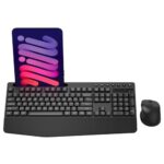 HUO JI ワイヤレス キーボードマウスセットは、静音設計のフルサイズ英語配列。2.4GHzで遅延ゼロ、人間工学のリストレストと6ボタン無線マウス付き。スマホスタンド、高耐久かつ省電力で、Windows11/macOS対応。