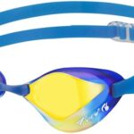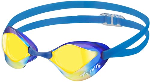 日本製スイミングゴーグル、レーシングモデルBladeF(ブレードエフ) V122SAM CBLOR。ヘッドアップを抑えた姿勢で泳げ、10歳~大人用。ラクラクくもり止め機能付ミラータイプ。WA承認。
