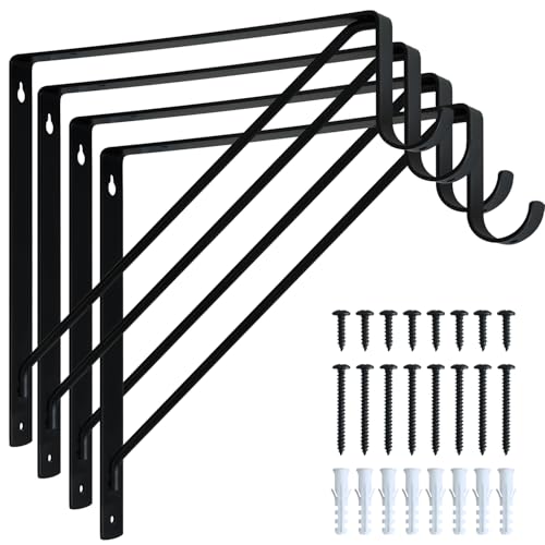 Socpuroの棚受け金具4個セットは、フック付きで280*280mmのL字型。100kg耐荷重のスチール製で、壁掛け収納やクローゼットロッドに最適。
