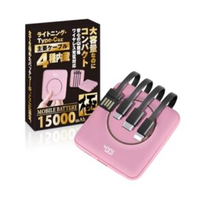 【2025新登場】 モバイルバッテリー 大容量 15000mAh 軽量 薄型 急速充電 3台同時充電 充電器 LED残量表示 タイプC ケーブル内蔵 携帯充電器 Type-C入出力兼用 iOS/Android対応 安全設計 回路保護 機内持ち込み可 旅行 出張 防災グッズ PSE認証済 海外対応の製品情報