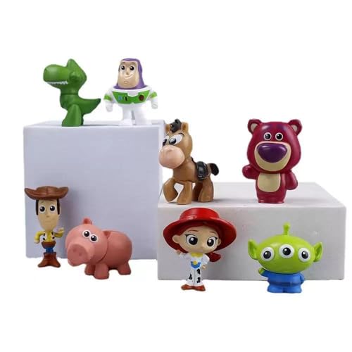 トイ・ストーリーの8個セット、ウッディ、バズ・ライトイヤー、イチゴのクマなどのフィギュアが含まれたミニ置物。ディズニー・ピクサーコレクションで、玄関や贈り物、誕生日プレゼントに最適。