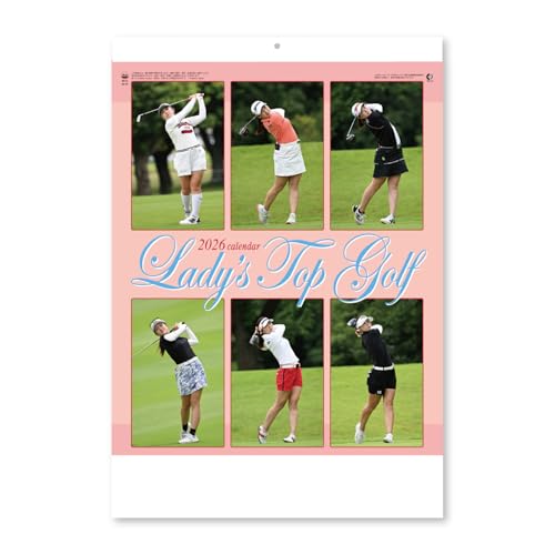 新日本カレンダー 2026年 壁掛け式のレディス・トップゴルフカレンダー。サイズは607×425mmで、年表付き。デザインはゴルフに関連した美しいイラストが特徴。