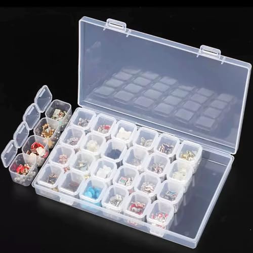28分割のPP製ビーズケースは透明な独立型収納容器で、小分けに最適です。ダイヤモンドアートやDIYアクセサリー、雑貨、ビーズ、スパンコール、釣りフックなどを整理できます。ホビー用品に便利です。