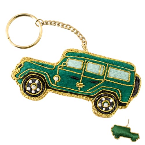 インド伝統のザリ刺繍を施したキーホルダー。おしゃれな金具と可愛いビーズでデザイン。車やバイクの鍵、バッグにぴったりで、ハンドメイドのアクセサリーとしても素敵。グリーンのサテン生地が魅力的。