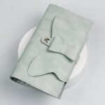 ボウスナップボタン付きのスタイリッシュなメイクアップ収納バッグ。ネイルペンシルケースや美容ツールの持ち運びに最適。カラー:ブルー