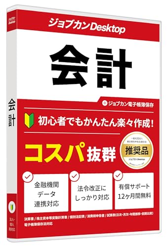 ジョブカンDesktop 会計 23 AEはインボイス対応の最新会計ソフトで、財務諸表や決算書が簡単に作成可能。法人や個人事業主向けに適し、副業やフリーランスでも利用できます。
