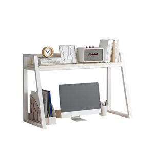 SEBUOER デスク上収納ラック デスク上置棚 机上本棚 卓上置棚台 収納棚 書類 雑誌 ストレージ本棚 ファイル整理棚 台形設計 卓上収納 物置ラック 小物雑品収納ラック デスクトップ 仕切り おしゃれ 文房具 学校 オフィス 事務用品 卓上整理棚 組立式 組み立て簡単 (1層55*32*65cm, フレーム:ホワイト/棚板:ナチュラル)