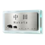 Anvisのクリアプレート表札は、立体デザインでおしゃれな仕上がり。玄関やポスト、門柱に貼るだけの簡単設置。強力両面テープ付き。オーダーメイド可能で、サイズは120mm×70mm、ステンレス調に黒文字。