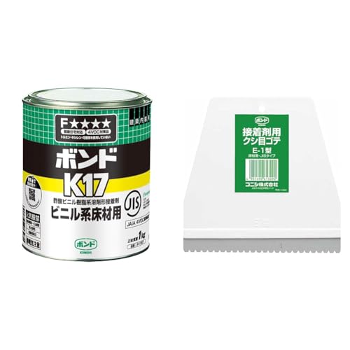コニシ ボンド K17 1kgは強力な接着力を持つ床材用接着剤。#61309 クシ目ゴテ E-1型は均一な塗布を実現し、精密な作業をサポートします。