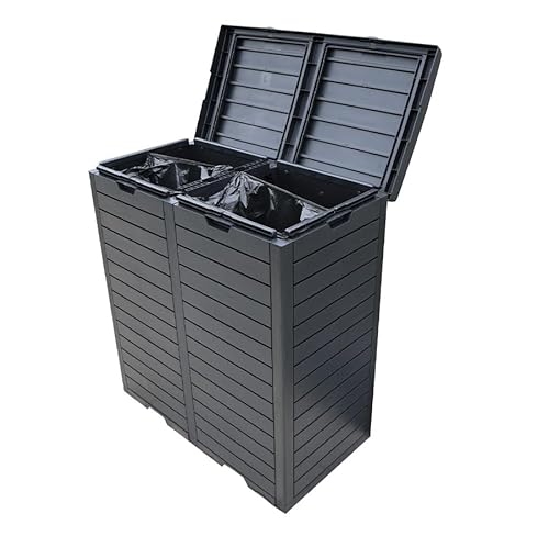 大容量230Lの屋外ゴミ収納庫。カラスや野良猫対策に最適なふた付き。樹脂製で簡単組立、ゴミ荒らし防止にも優れたデザイン。ブラックカラーで外観もおしゃれ。