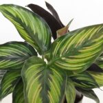 カラテア ビューティースターは、濃い緑と薄い緑のストライプ、淡いピンクの斑が特徴の観葉植物です。葉裏は紫がかった茶色で、美しいコントラストが楽しめます。非耐寒性の多年草です。