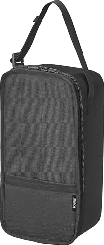 山崎実業のスチームアイロン収納ケースは、ブラックのセミハードタイプでサイズはW18×D14×H33cm(持ち手含まず)。ハンディタイプ用で、掛けて収納可能な便利なデザインです。