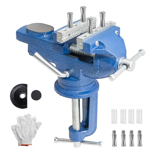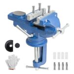 GOODRIG 卓上バイスは、口幅約75mm、最大開口64mmの小型バイスです。360度回転ベースが付いており、金属加工やDIY、精密作業に最適です。作業台に取り付けて便利に使用できます。
