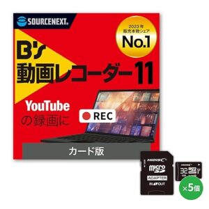 ソースネクスト | B’s動画レコーダー +マイクロSD 32GB Class10 UHS-I(HDMCSDH32GCL10UIJP3)×5個 | SD変換アダプタ付きの高速microSDXCカードと、web上などの動画を録画・youtubeを録画できるソフトのセット | Windows対応