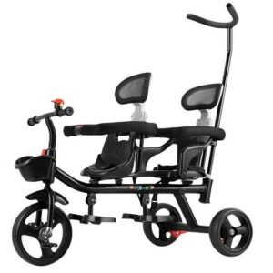 【Banefu】三輪車 子供、手押し棒 、二人乗りベビーカー、ペダル式ベビーカー、炭素鋼フレーム、耐荷重90KG、幼児用乗用玩具 1-7歳用、子供遊び場スポーツ男の子、女の子用屋外おもちゃ、誕生日プレゼント, お祝いギフト (ブラック)