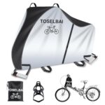 TOSELBAI自転車カバーは420D超厚オックスフォード生地製で、三重縫製による耐久性があります。両開きファスナー、収納袋&フック、水筒ホルダー付き。カラーバリエーションはシルバーとブラックです。