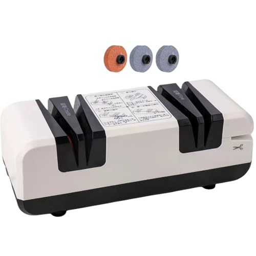 Pakabiの全自動ナイフ研ぎ器は操作が簡単で、家庭用や業務用に最適。包丁、はさみ、短剣に対応し、プロ仕様のキッチンツールです。ホワイトモデルに予備砥石1セット付き。