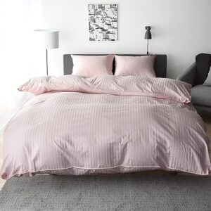 Sleep Tailor 日本製 布団カバー セット クイーン 4点セット 防ダニ 綿100% サテンストライプ 高密度生地315本 掛け布団カバー ボックスシーツ 枕カバー2枚 北欧 おしゃれ エトワール (クイーン, ベビーピンク)[ST]