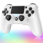 2025革新モデルのP4ワイヤレスコントローラーはBluetooth接続、1000mAhバッテリーで遅延なし。二重振動、ジャイロセンサー、高耐久ボタン、ヘッドフォンジャック付き。P4/P3/PC対応、日本語取扱説明書付き(白)。