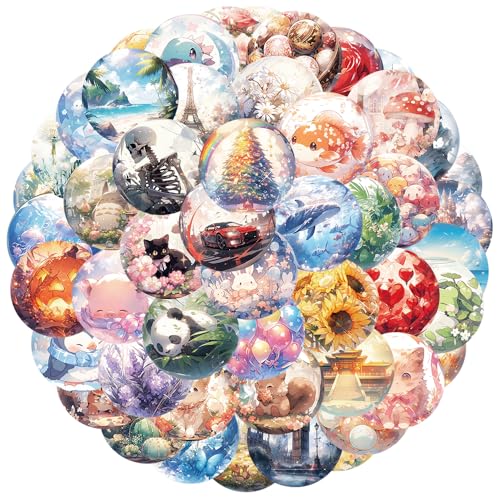 ボールの中の世界ステッカー50枚セットは、防水デカールでかわいいデザインが特徴です。スーツケースやPC、携帯電話などさまざまなアイテムに貼って楽しめます。誕生日プレゼントや記念日のギフトにも最適です。