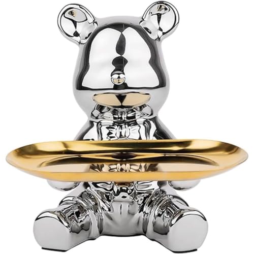 FiveLnの鍵置き小物入れは、クマデザインの卓上トレー。オシャレなインテリアで玄関やキャビネットに最適。電気メッキ仕上げで装飾品や靴の収納にも。新築祝いギフトにおすすめです。(シルバー)