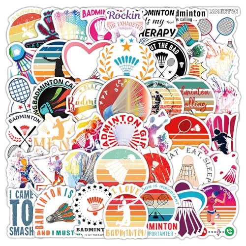 かわいいバドミントンステッカー60枚セット。防水デカールで、スーツケースや自転車、ノート、ギターなど多用途に使用可能。学生や子供へのギフトや誕生日プレゼントに最適。