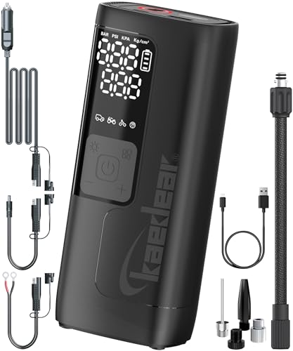 Kaedearのバイク用電動エアーポンプKDR-AP4は、2600mAhバッテリーで0-200KPaを2分で充填可能。全バルブに対応し、自動車や自転車、ボール等にも使えるハイブリッドモバイルコンプレッサーです。