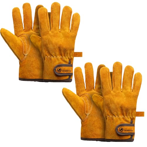 Fieektyの耐熱グローブは、キャンプやバーベキュー、溶接作業に最適です。温度試験合格で高温耐性350℃、臭いがなく、牛革製で裏付き吸汗機能付き。2双入り。