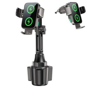 GuMosh 車内用品 ドリンクホルダー スマホ ワイヤレス充電 15W カップホルダー 車 自動開閉 二重コイル設計 360度回転 2in1ワイヤレス車載充電器 挿入固定タイプ エアコン吹き出し口 幅広いのスマホ機種に対応