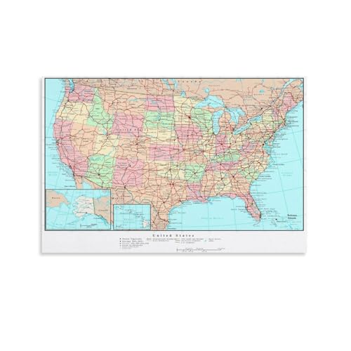 アメリカ地図のモダンな絵画ポスター。サイズは16×24インチ(40x60cm)。部屋のインテリアにぴったりの壁飾り。スタイリッシュで、ホームアートワークとして最適です。