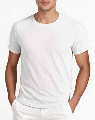 このメンズTシャツは、速乾性と通気性に優れた軽量素材を使用しています。快適なラウンドネックデザインで、暑い夏のスポーツにも最適。カラーはホワイト、サイズはMediumです。