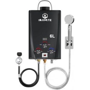 タンクレス給湯器プロパン、1.58GPM 6L オンデマンドプロパン温水ヒーター、取り付け簡単、屋外温水シャワーに最適、RVキャンプキャビンシャワー用、ブラック