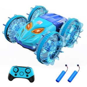 ラジコンカー 子供向け 水陸両用スタントカー オフロード リモコンカー 360度回転 防水 四輪駆動 両面走行 2.4GhzラジコンLEDランプ付き USB充電式 電動 車おもちゃ キッズ 小学生 クリスマス 誕生日 ギフト プレゼント Yummo知育玩具 技適認証済みB900 ブルー