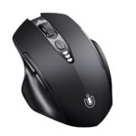 Bluetoothマウス、マルチデバイス対応、3種接続方式(BT 5.0/4.0+2.4GHz)、充電式エルゴノミクス、4段階DPI調整、ブラック。