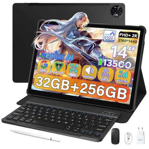 DOOGEE E3MAXは14インチ大画面のAndroid15タブレット。8コアHelio G100、32GB+256GBストレージ、最大2TB拡張可。13500mAhバッテリー、4スピーカー、5G WiFi、Bluetooth 5.2、顔認識機能付き。